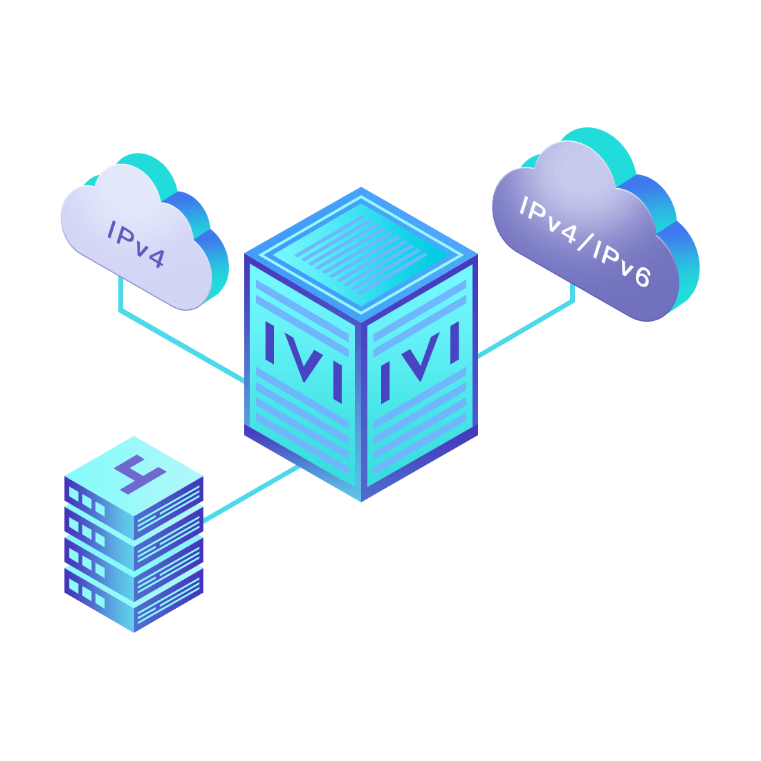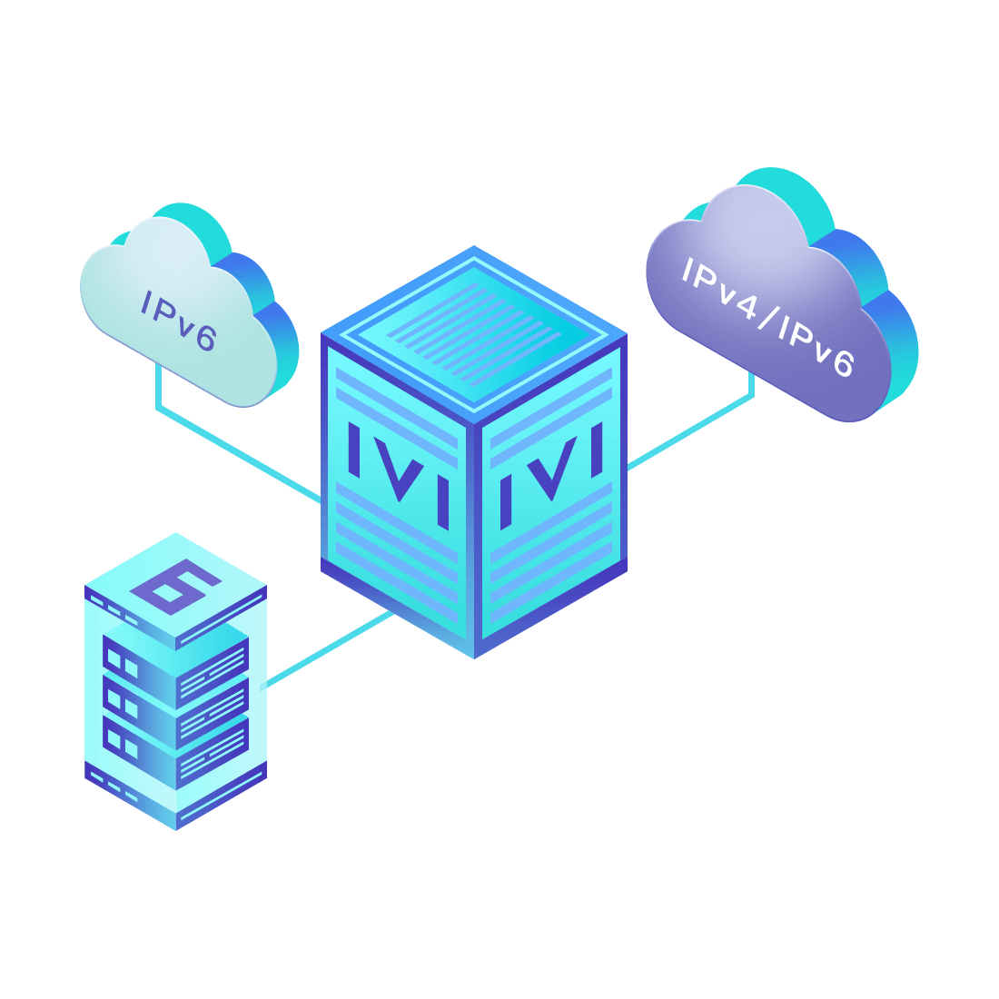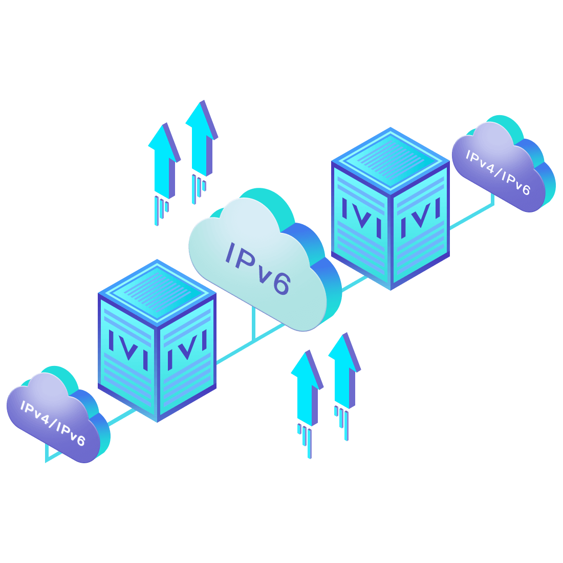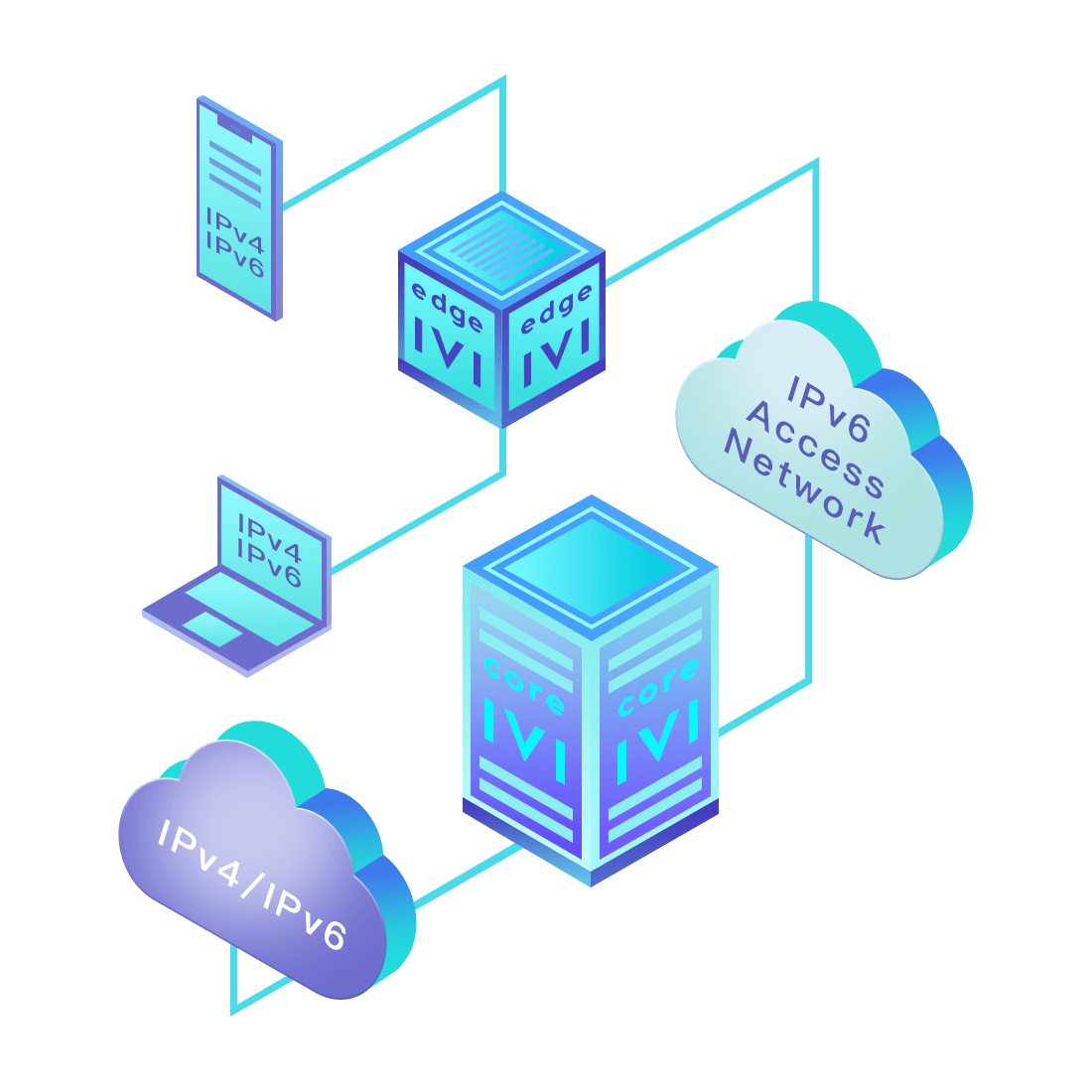 對正在進(jìn)行IPv6整體升級規(guī)劃的運營商,應(yīng)用IPv6升級方案2.5,通過IVI無狀態(tài)翻譯技術(shù)和純IPv6接入網(wǎng)絡(luò),為雙??蛻舳撕碗p棧服務(wù)器提供連通服務(wù)。